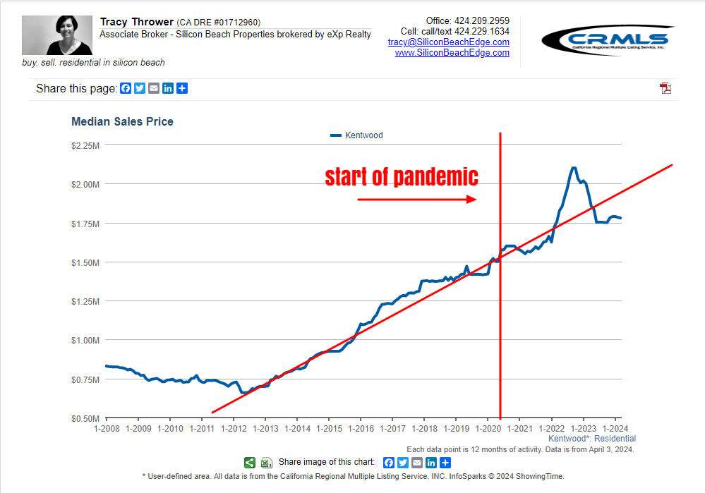And by the way, those crazy gains appear to be a Kentwood phenomenon. If you look at the beach cities prices for the same period, you don’t see that big price run up in mid to late 2022.